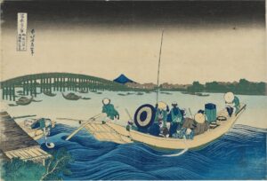 葛飾北斎筆 冨嶽三十六景・御厩川岸より両国橋夕陽見