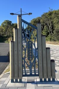バスを降り、駐車場から左へ進むと公園の入口があります。