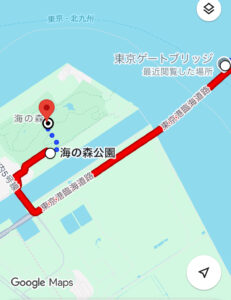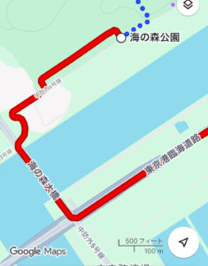 後から知ったのですが、臨時ルートが開放されている日もあり、その場合は海の森大橋を渡らずにゲートブリッジへ行けるとのことでした。