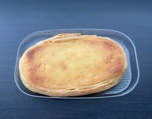 ポテトパイはを開けると透明なケースの上に乗っかっていました。